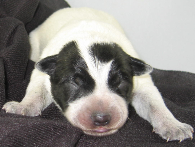 Although both of my females who have had puppies are black, the puppies are all born white except for markings on their heads. In just a few weeks, they will get their dark coloring. The first time this happened with a litter, I wondered if my dog had been out visiting the sheep dog next door rather than the great male heeler I brought her. No, this is just an interesting phenomenon.