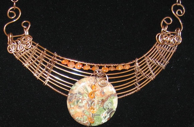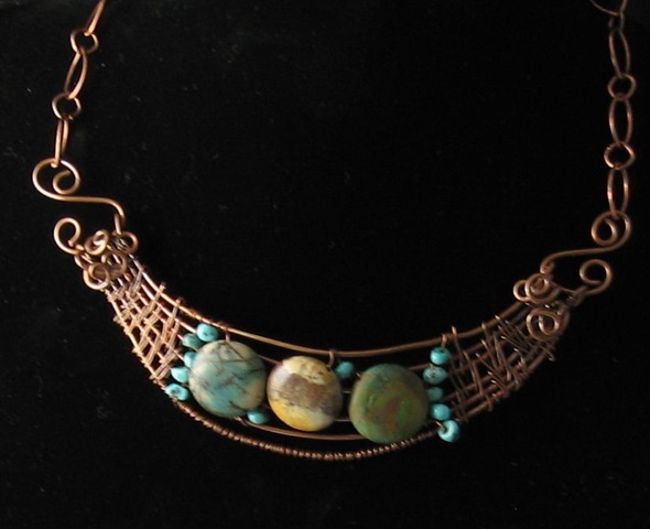 I mainly worked with cabochons yesterday, but was pleased with a couple of the new wrappings and the bezel I created. The first stone is a boulder opal and all the rest are turquoise (yes, even the brown one). See what you think.