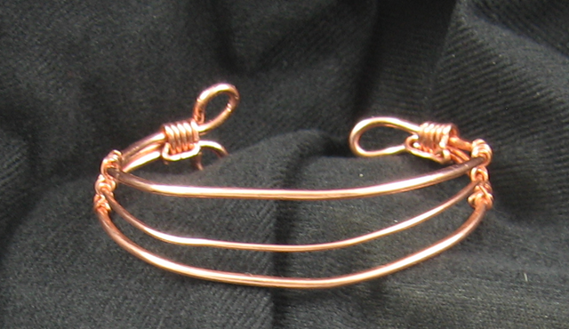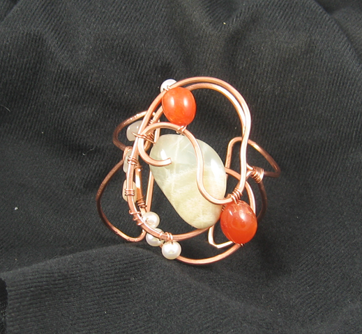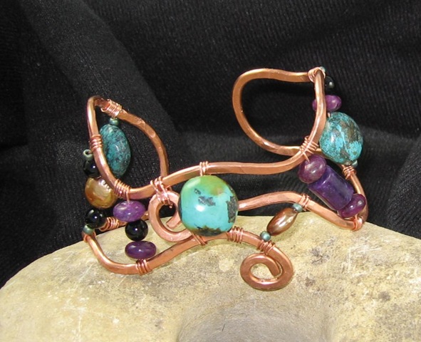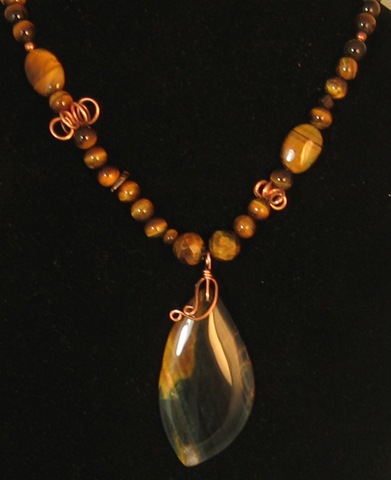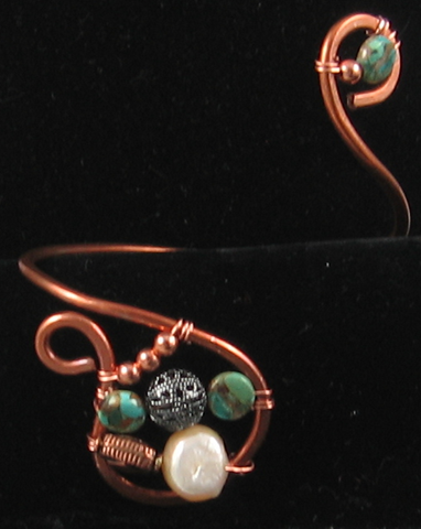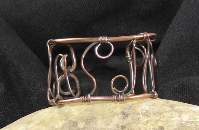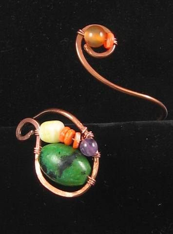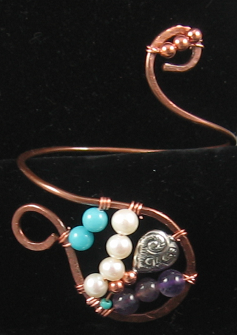 Although you can’t see it in the photo, there is a flower etched on the copper portion of the pendant. This pendant started as a bracelet and ended (at least for the moment) as a necklace. I think “resistance to closure” which is also practiced in creativity training worked well for this bracelet/necklace.