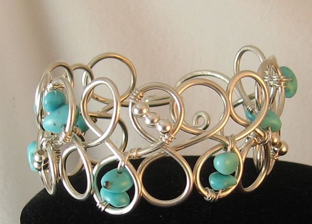 The next step after ordering that sterling silver wire is cutting it. I’m getting much braver and last night, making the bracelet shown here, I actually forgot about the price. Later, when I looked up the amount of wire used and the price for the silver I was extremely glad I didn’t mess up the bracelet!