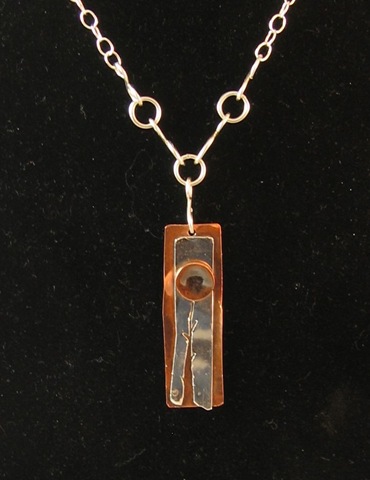 Finally, the last photo shows one of the mixed metal pendants I mentioned in another blog entry. It has a pretty modern look which isn’t normal for me, but it’s a start on the mixed metal layers!