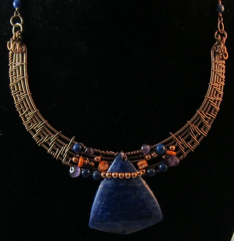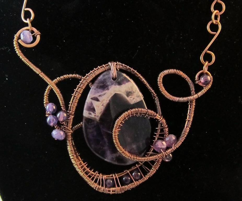 Late the evening before the piece was due, I started anew. Working late and picking it up again the next day, I did finish at the appointed time. As I designed this piece, I thought about the title of the charity event, The Cattle Baron’s Ball and the idea of a rope or lariat seemed appropriate. I don’t know if this piece is better or not, but it IS finished and has been delivered. The gemstone is a beautiful piece of amethyst from Magpie Gemstones.