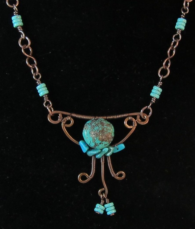 Another of my pieces was donated by a boutique I serve for a charity event in a west Texas town. I was especially pleased that the boutique owner chose some of my work. I’d been calling this “ethnic”, but she termed it “tribal”.