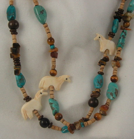 The horses are back. Last year my friend who owns Dovetails of Wimberley found a necklace filled with small carved horses. I took it apart and made at least half a dozen “horse” necklaces for her customers depleting our supply. A few weeks ago, she found another horse necklace and I’m at it again (as grandson Gabriel says “neigh, neigh”). Three of these have already gone to Theo B Camisole, a boutique in Camden, Maine, and the others are trotting over to Dovetails.