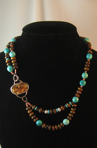 Good suggestions Bara. I finished #1 pendant by stringing it onto mixed beads in greens and browns. Both that piece and necklace #2 just went to a boutique in Maine. I’ll be sending the owner the names. I almost hated to see them go, but now I can make more! Oh what fun . . . it is to bead . . .